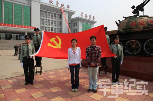 编导张璐和刘岩在党旗下庄严