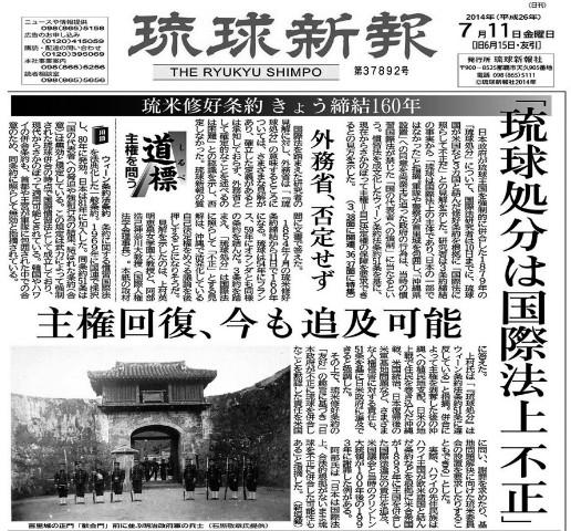 从1609年萨摩岛津氏一度侵略琉球,再到1879年“琉球处分”,经过近三个世纪的谋划经略和十年运作,日本一举吞并延续500多年的琉球王国。然而对于这次吞并过程的细节,日本一直语焉不详。《琉球新报》近日披露日本吞并琉球的过程中,存在很多斩不断理还乱的后遗症,特别是在国际关系法和国际人权法层面更破绽毕现。该报质疑称,如果吞并过程违法,今天的日本政府如何面对?驻日美军存在的合理性在哪里?冲绳自立和独立运动的地位如何?这一系列问题,若追根溯源,就不得不说到“琉球处分”。